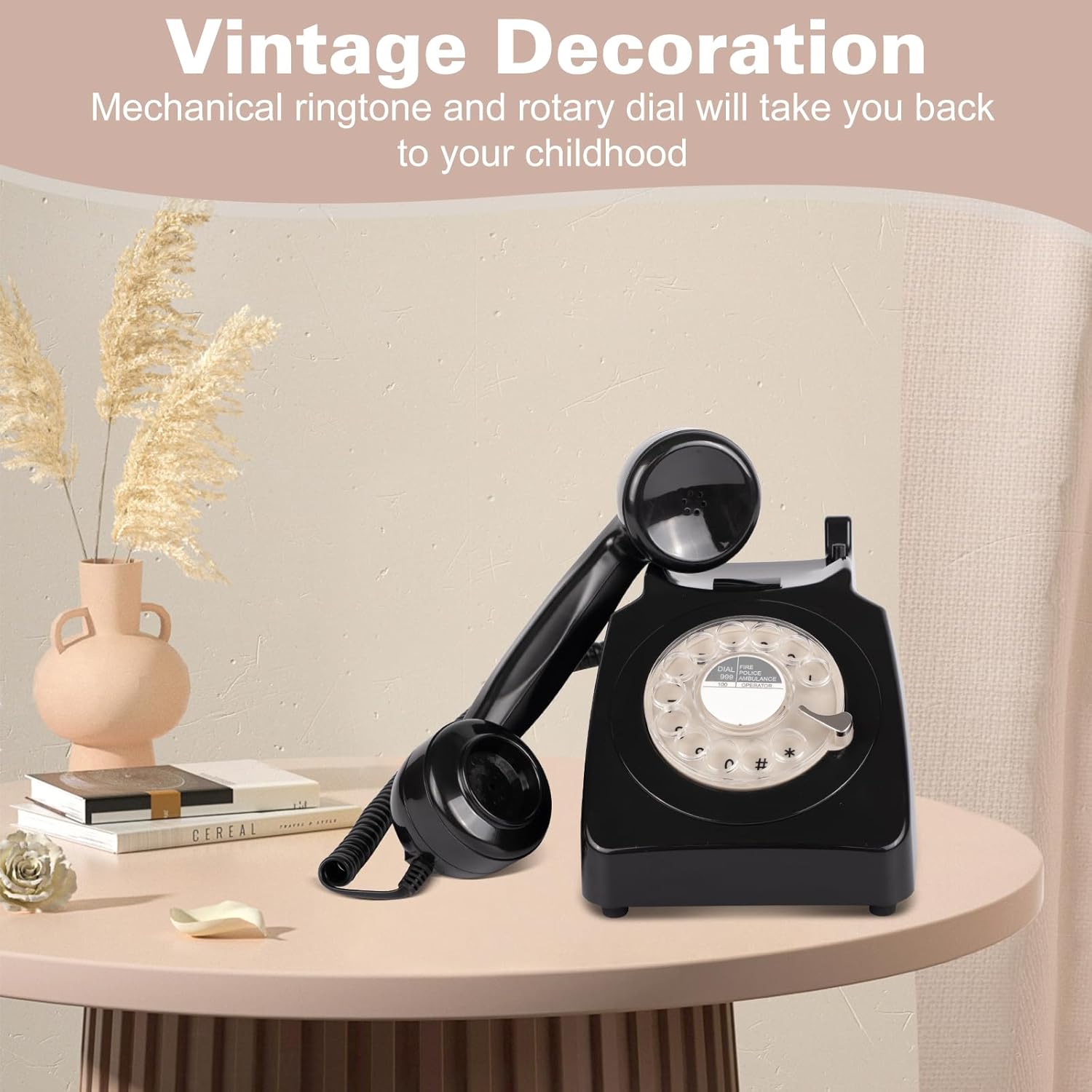 Home Creative Retro Phone, Corded Landline Home Phone, Analog Decorative 1960s' Old Fashion Desk Phone, Classic Rotary Dial Vintage Telephone with Bell Ringer for Home/Office/Hotel/School