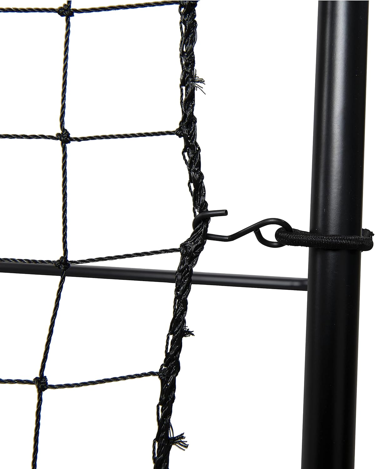 Keep fielders light on their feet with the Champro 3-Way Rebound Screen. It returns thrown baseballs and softballs as ground balls, line drives, or pop-flys depending on where they make contact on the screen. Practice fielding alone or take turns throwing and receiving with teammates to improve reaction time. With continuous use, players will learn to more quickly and accurately predict the path of rebounding balls. The 52" x 36" frame is made of 3/4" steel tubes, with powder-coating for a tougher finish that lasts through seasons of use. The weatherized 21-ply polyethylene (PE) net is secured by bungee cords, so it bounces balls back with verve and lasts for seasons, even through difficult weather conditions. Sections of the steel frame connect and fit snugly into the Y-shaped connecting piece, making assembly quick and easy. Weighing under 7 pounds, the 3-Way Rebound Screen is light and easy to move from storage to the practice field.