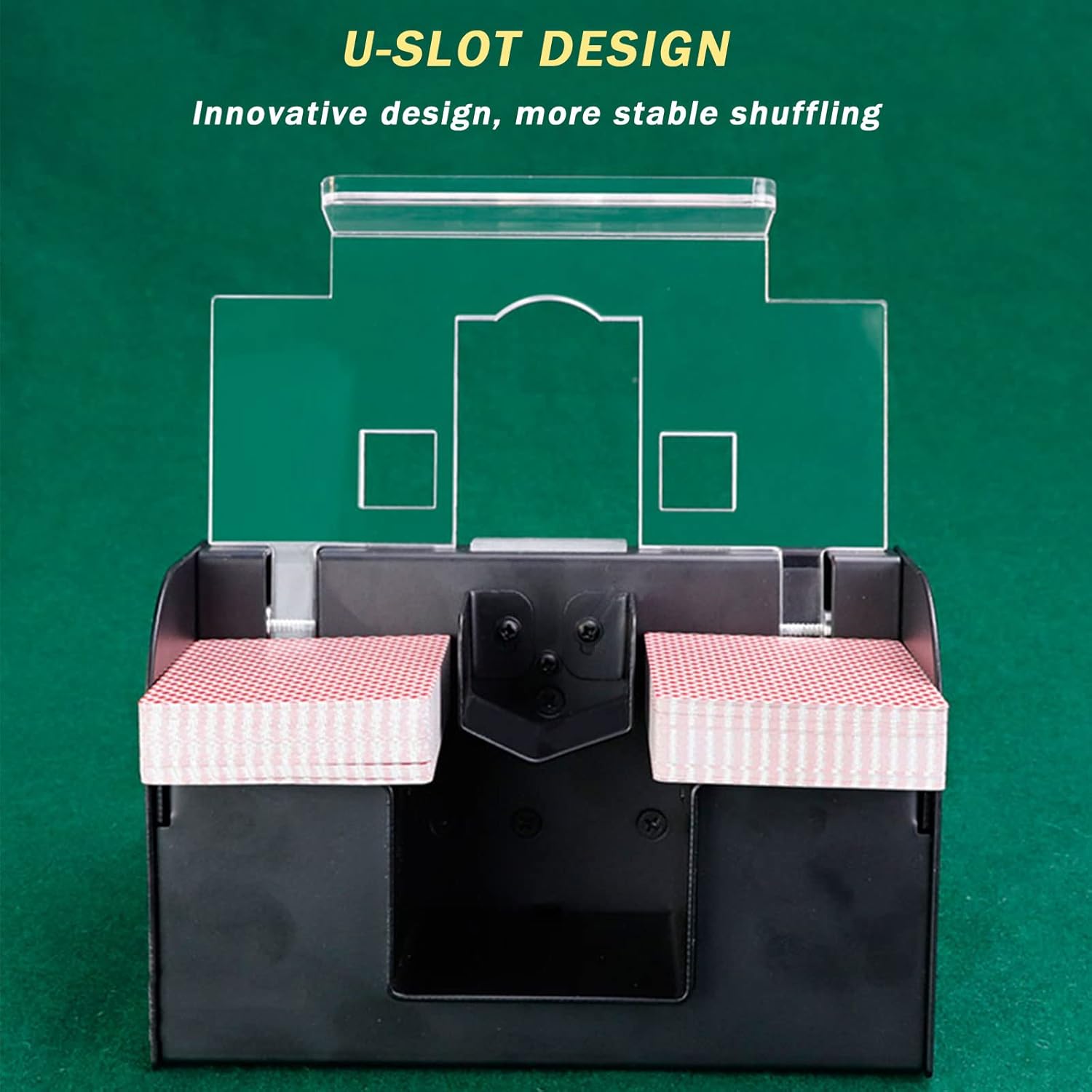 One-click shuffling is fast and convenient, 2 decks of cards are shuffled in about 3 seconds, and the high-speed aging will automatically stop for easy use. Enjoy the tranquility, the noise of the whole machine is less than or equal to 60 decibels during normal work. parameter: Name: Professional silent shuffler Specifications: 2 decks of cards can be shuffled at the same time Size: Length: 21cm Width: 11.8cm Height: 10cm Material: alloy material + acrylic (1.6kg) Features: no rules shuffling, one-click shuffling We always pay attention to what you need in life, and strive to make your daily life safer, more convenient, and more enjoyable, contact us by mail and send you the ideas of the products you need, we have a strong design and manufacturing team as your support, we We listen to every customer's suggestion to improve our products into products you can rely on.