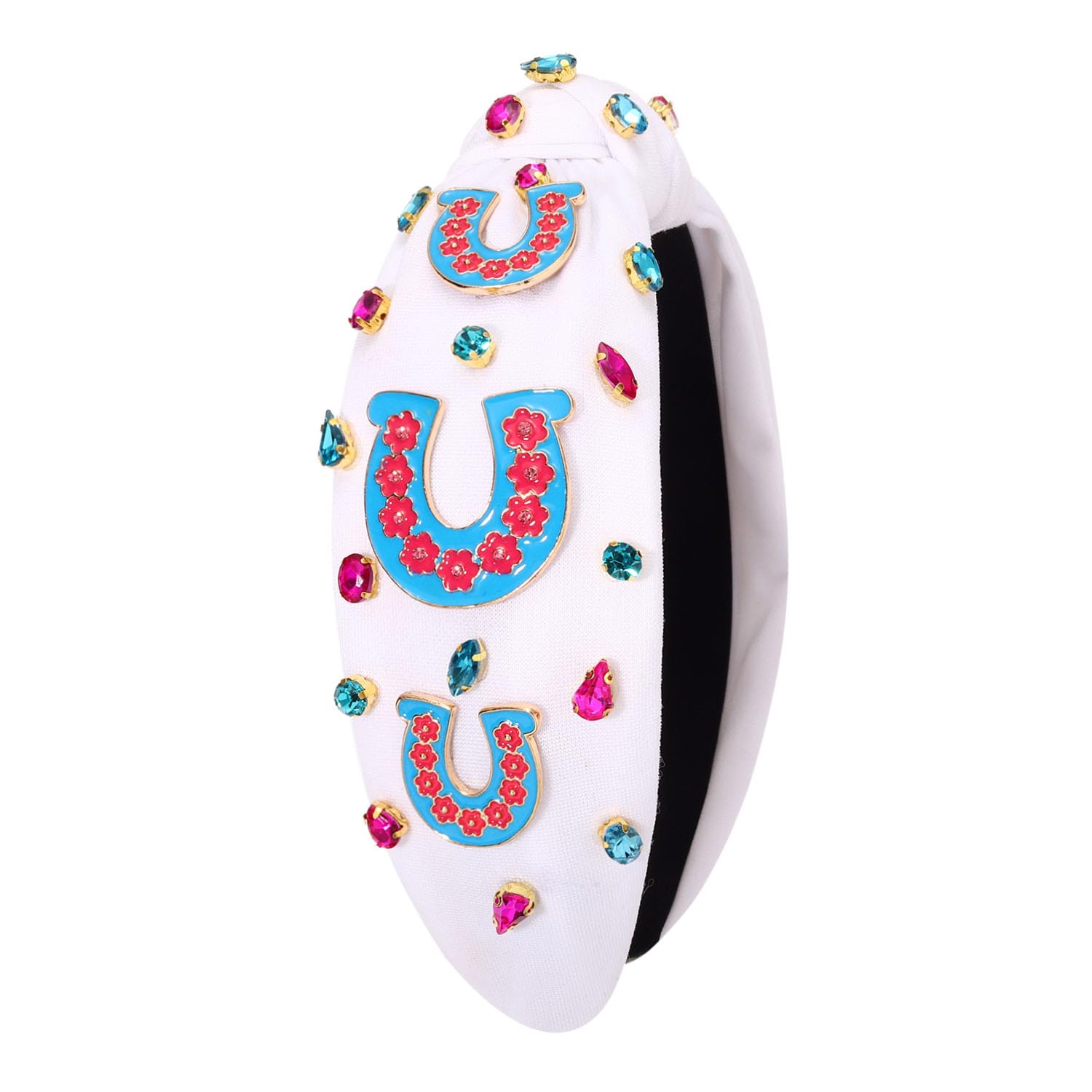 Derby Headband for Women Kentucky Derby Horseshoe Headband Jeweled Crystal Top Knot Headband Derby Horse Race Day Headwear Sports Fan Accessories
