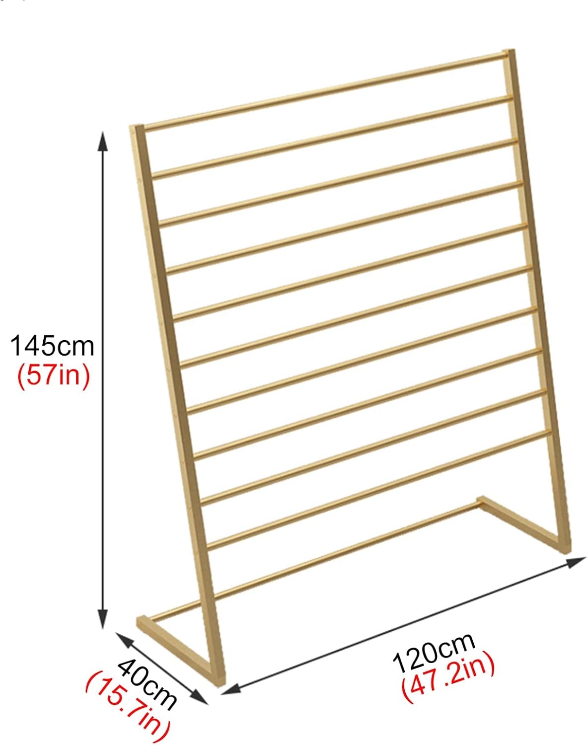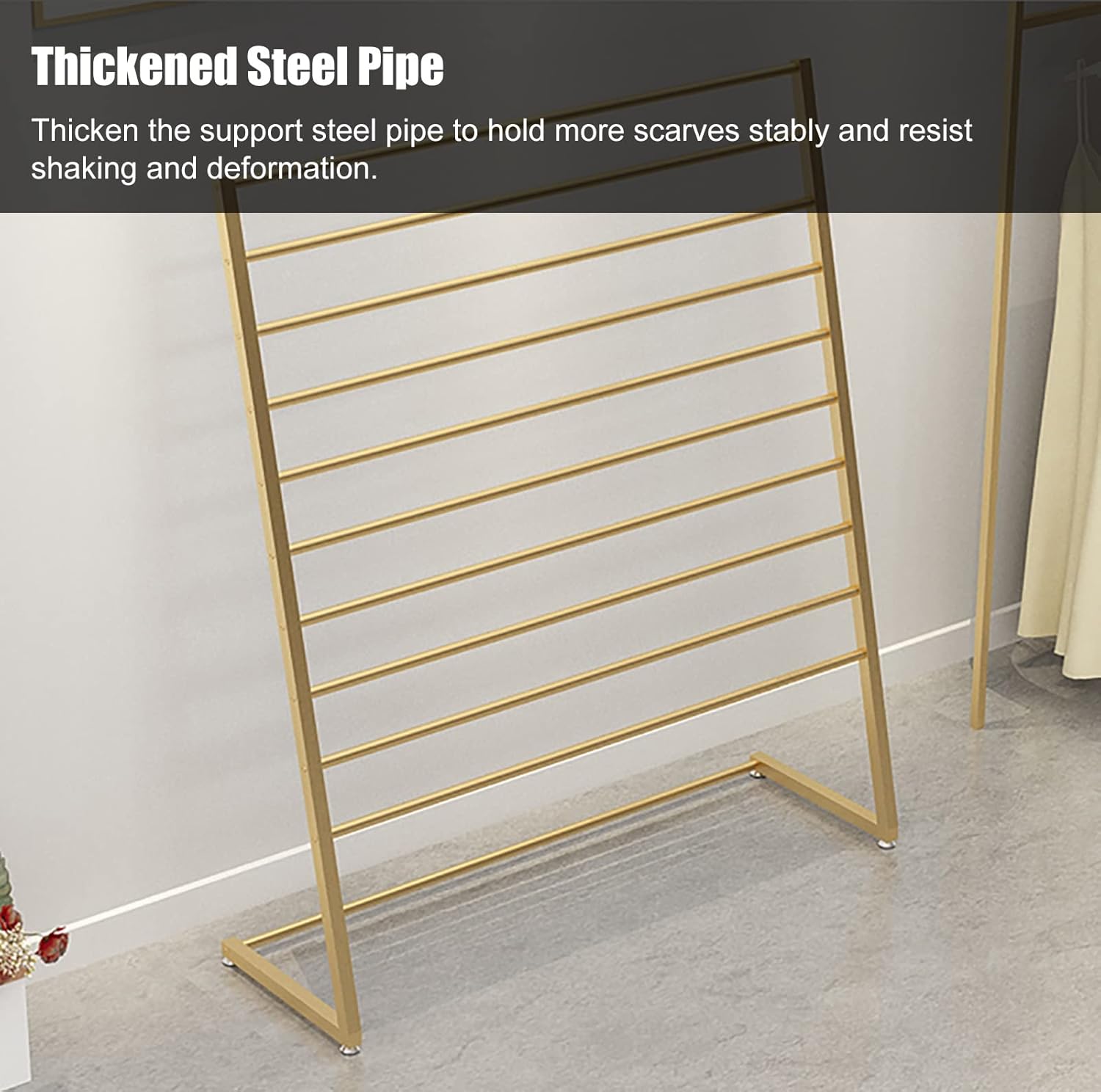 specifications: Material: Metal Steel Color: Gold , Black , White Style; Modern Size: Tall: 145cm/57in; Width: 40cm/15.7in; Length: 60cm/23.6in; 80cm/31.5in; 100cm/39.4in; 120cm/47.2in Multi-Purpose: Suitable for scarf, silk scarf, belts, pants, etc Scenes: Home, clothing store, apartments, hotels, closets, etc Features: Heavy weighted base for stability. The scarf rack organizer is made of the strong steel with a durable rust-resistant finish. All tools included. Follow the step by step instruction to assemble effortlessly. universal standing rack fits along a wall, in a corner, or anywhere you need smart organization. Package Includes: 1 x Scarf Rack Note: There may be an error of 1-3 cm due to manual measurement. There may be chromatic aberration due to the difference between the recording lamp and the display. Please refer to the actual product.