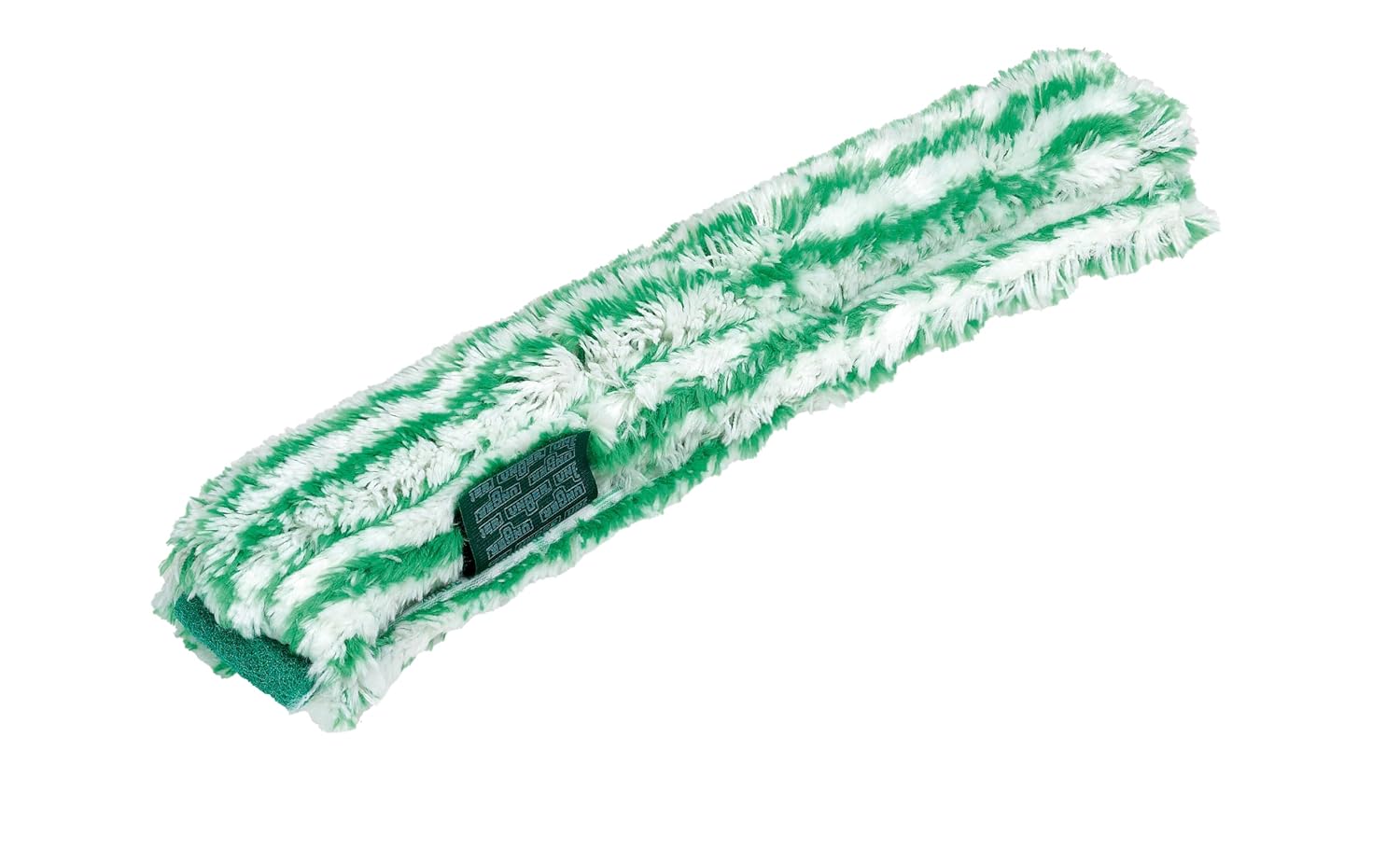 The Unger Monsoon Plus StripWasher Sleeve, 14", offers window cleaning professionals an efficient solution for maintaining medium-sized glass surfaces. The sleeve's woven fabric boasts excellent water retention, minimizing the frequency of bucket refills. Extra-long fibers combined with a non-abrasive scrub pad ensure thorough removal of dirt and grime, leaving windows spotless. Reinforced sewn ends and a durable backing contribute to the sleeve's longevity, providing a cost-effective option for professionals. The hook and loop fastening system allows for secure attachment to the T-Bar, facilitating easy installation and removal.