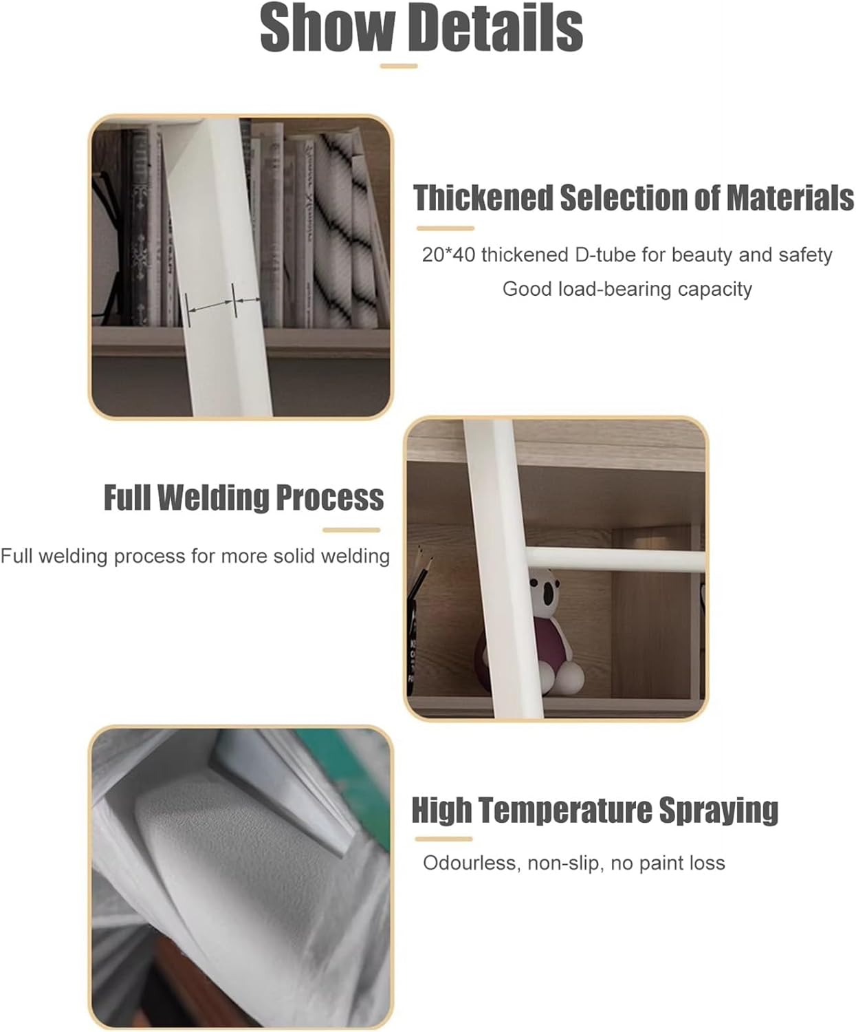• Safety & Adjustable With heavy duty hooks keeping you stable while climbing. There are additional reserved holes for the installation hook, which can be finely adjusted according to the actual height of the bed.