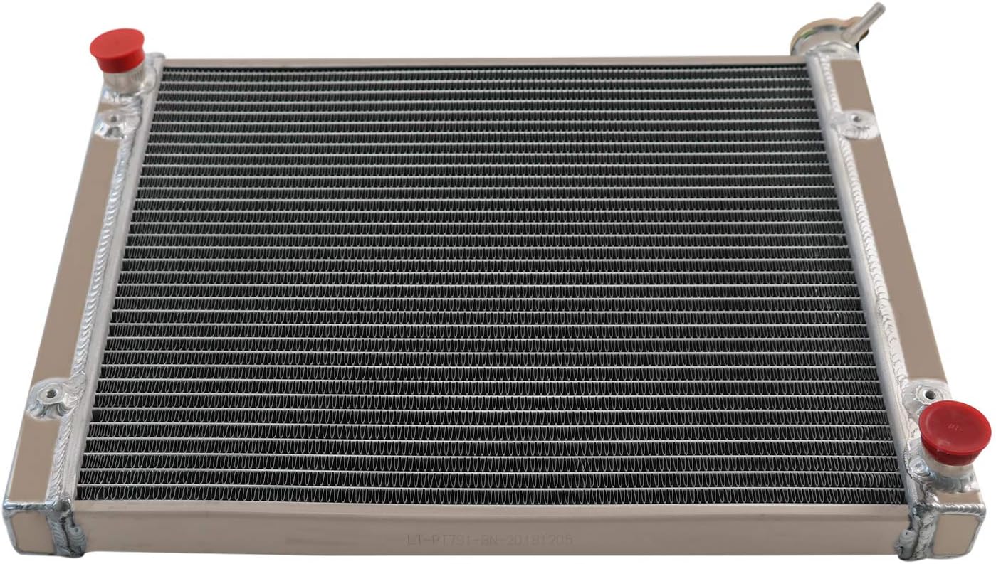 Welcome to our store, my deal buyer !The aluminum radiator is designed to provide maximum cooling efficiency to prevent premature engine failure. Its light-weight, and high-heat transferring aluminum features a tube and fin design that, dramatically increases surface area that enables the heat to dissipate more efficiently.This Aluminum Radiator is at least 40% more efficient than stock ones. Most importantly, it has a much higher capacity for coolant than stock ones, which means that your cooling system will be more efficient and will be more resistant to temperature surges in racing applications. Features: Full set in box and 100% brand new. 30% more cooling capacity than standard radiator. The core of the radiator is welded in vacuum brazing furnace, no epoxy. The tanks are 100% welded by TIG. 100% quality assurance tested.