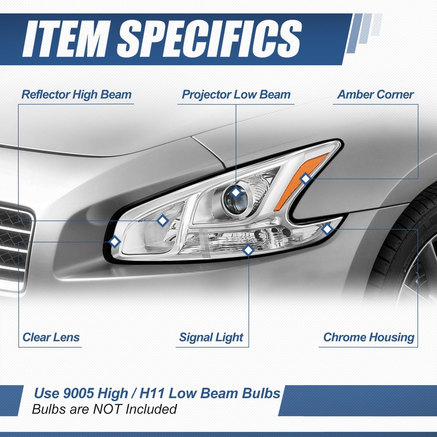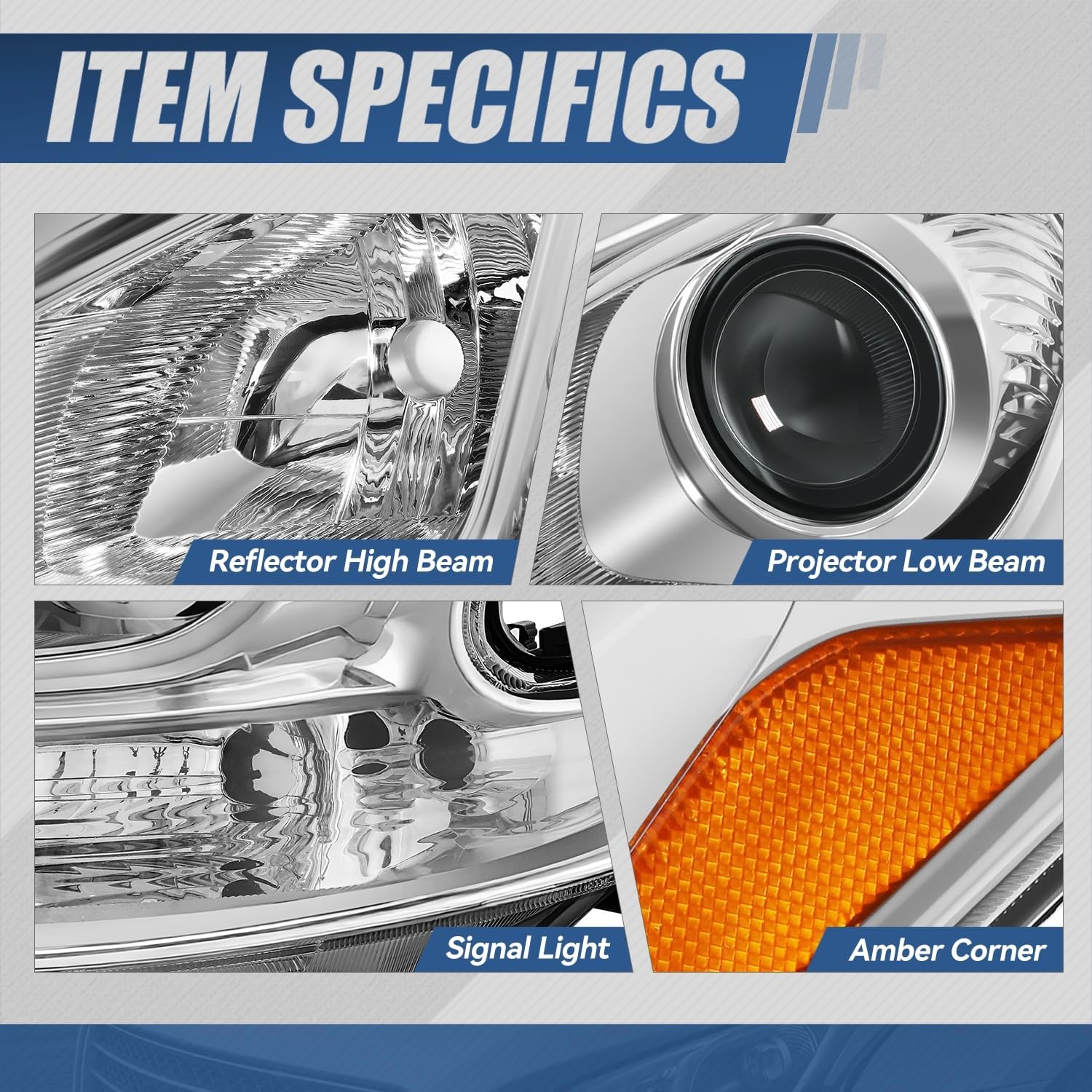 | Additional Features | Amber Corner, Chrome Housing, Projector Low Beam |
