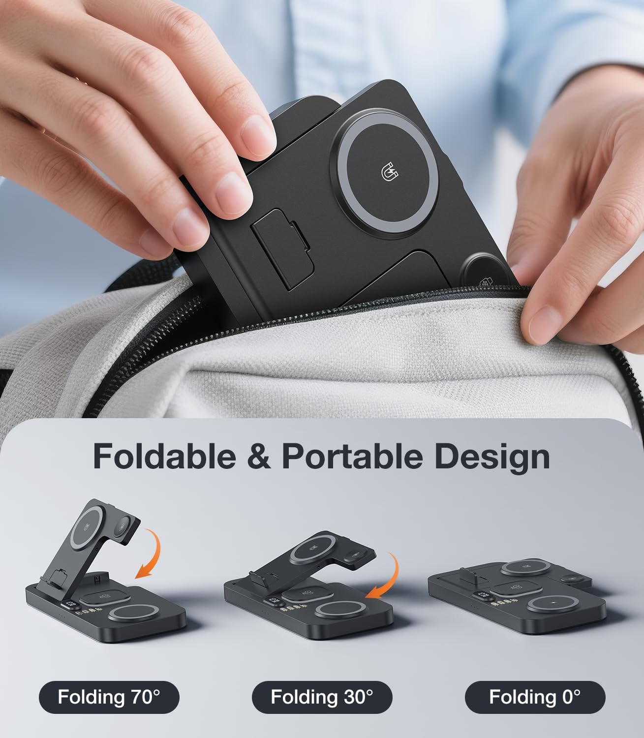 Foldable Magnetic Charging Station for Apple Devices, 30W Wireless Charger Stand with Clock & Night Light, Fast Mag-Safe Charger for iPhone 17/16/15/14 Pro Max Plus Air, AirPods and Apple Watch
