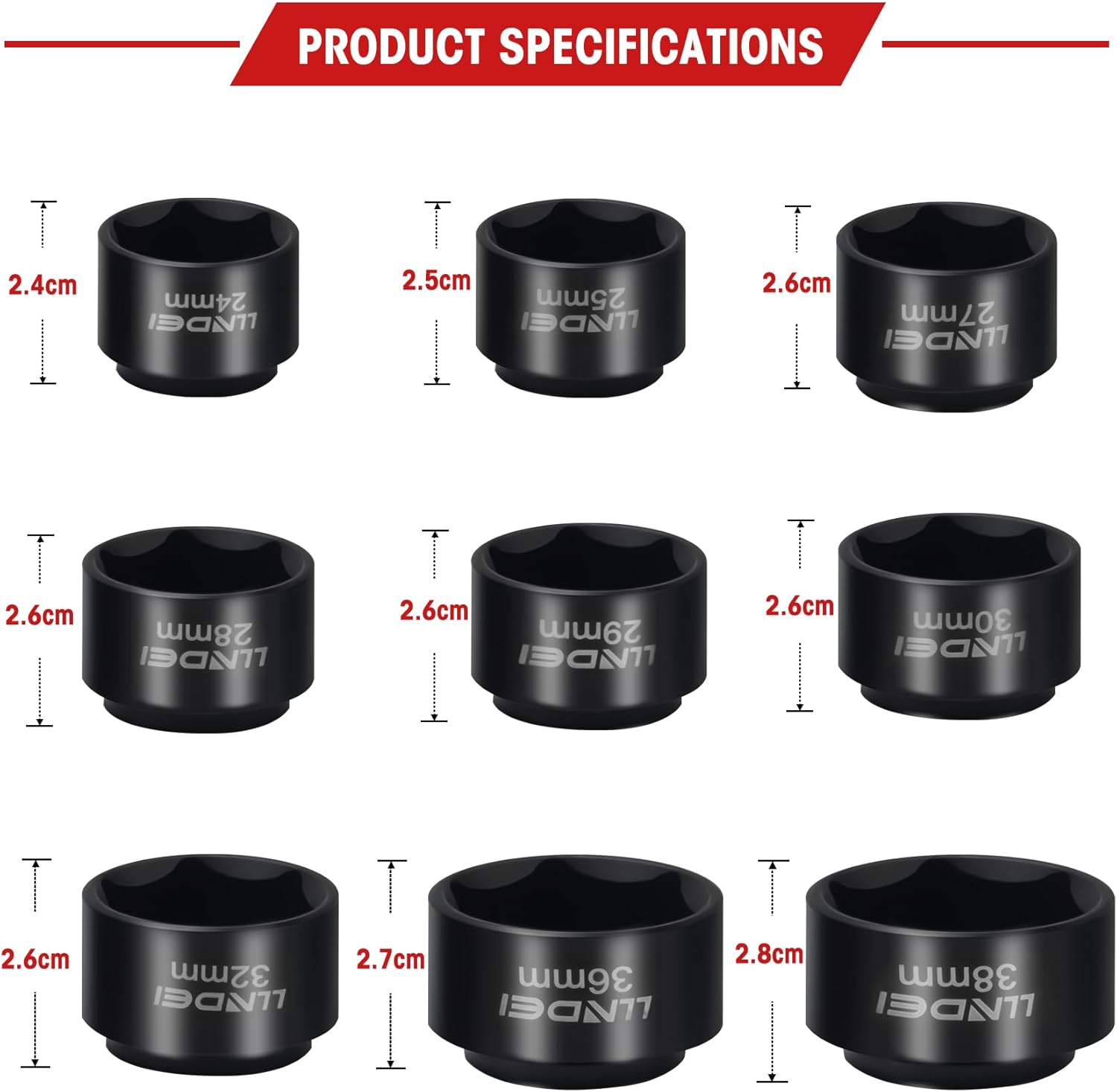• SERVICE ASSURED: All LLNDEI sockets are rigorously tested, ensuring peak performance and durability. LLNDEI Tools meet or exceed ANSI and DIN performance standards. It comes with one-year warranty. If you break a single socket, please feel free to contact us.