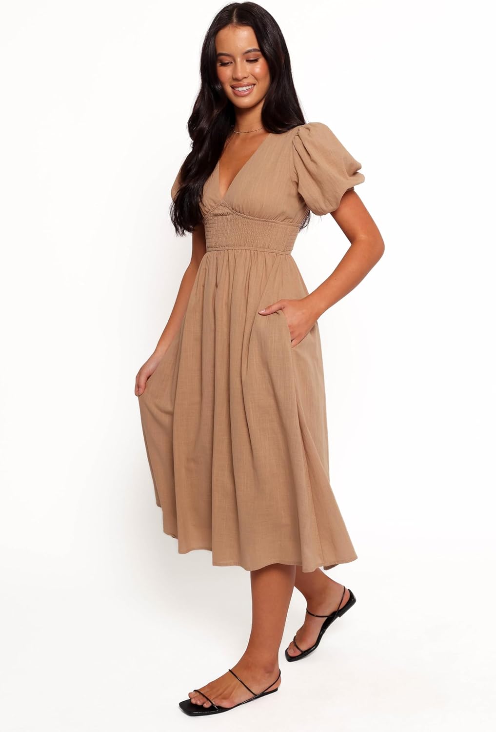 | Style Name | Ronnie Short Sleeve Midi Dress - Tan |