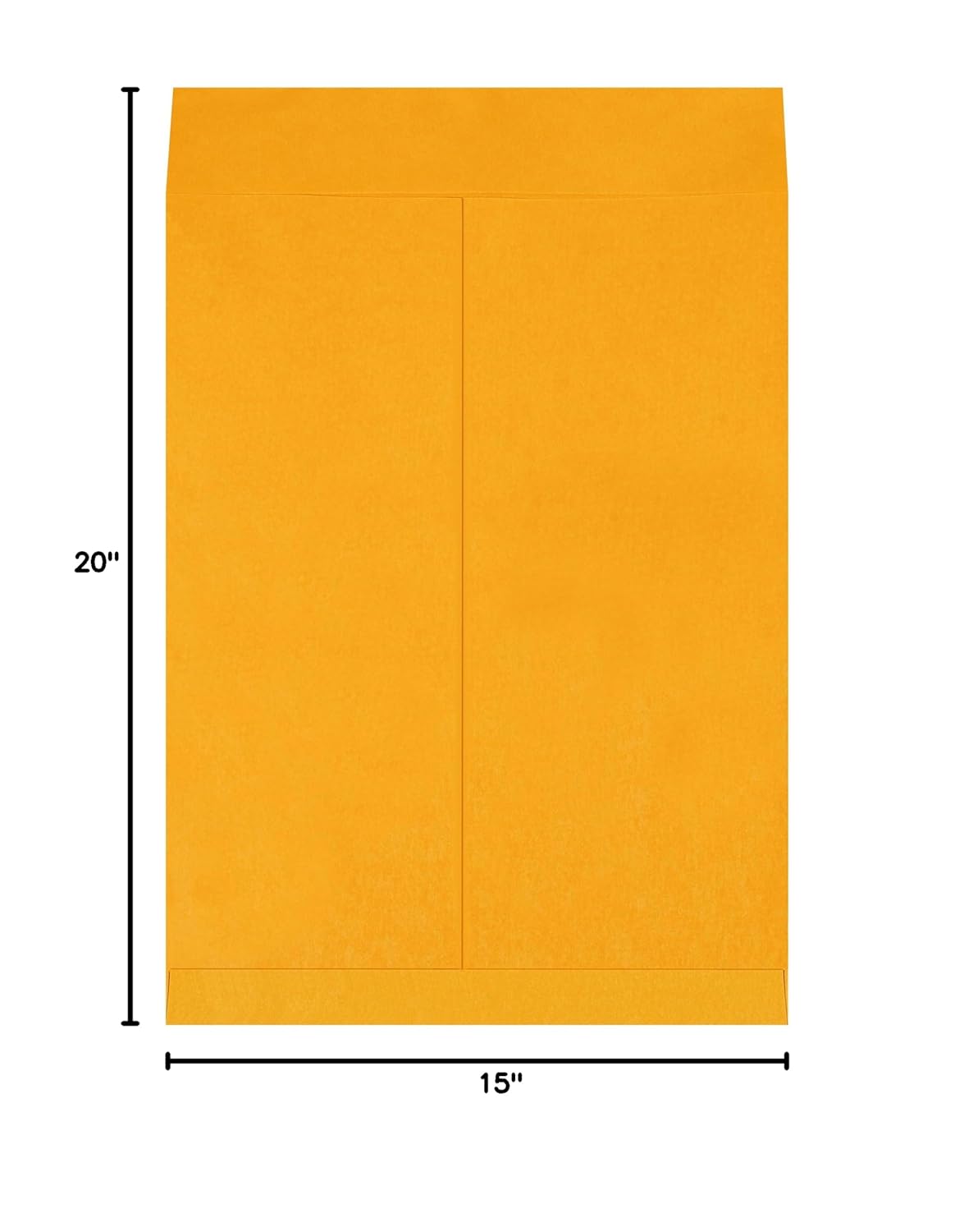 15 inch x 20 inch Kraft Jumbo envelopes. Large envelopes protect oversized printed items. Ungummed flaps allow envelopes to be reused. Allows flat storage for larger items. 28 lb. Envelopes. Sold in case quantities.