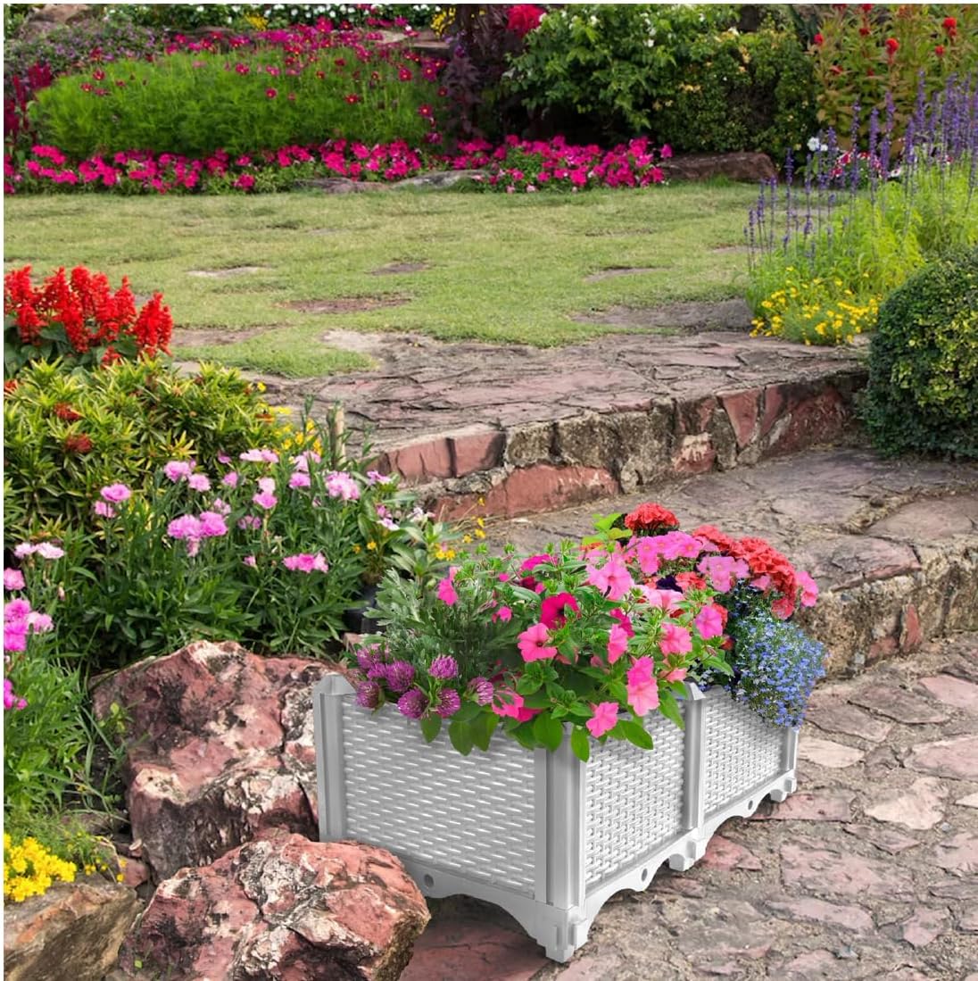 Enhance your garden effortlessly with our 12" Raised Plastic Planters. These versatile planters are perfect for growing a variety of plants, from vibrant flowers to fresh vegetables, allowing you to cultivate almost anything you desire. The stylish woven design on the sides adds a decorative element, blending functionality with aesthetics. Measuring 12 inches square by 7 7/8 inches high, these planters are made from durable plastic and are easy to assemble, with all necessary hardware included. Whether you’re an experienced gardener or just starting out, these raised planters offer an ideal solution for creating a beautiful and organized garden space. Transform your outdoor area with these practical and attractive planters today!